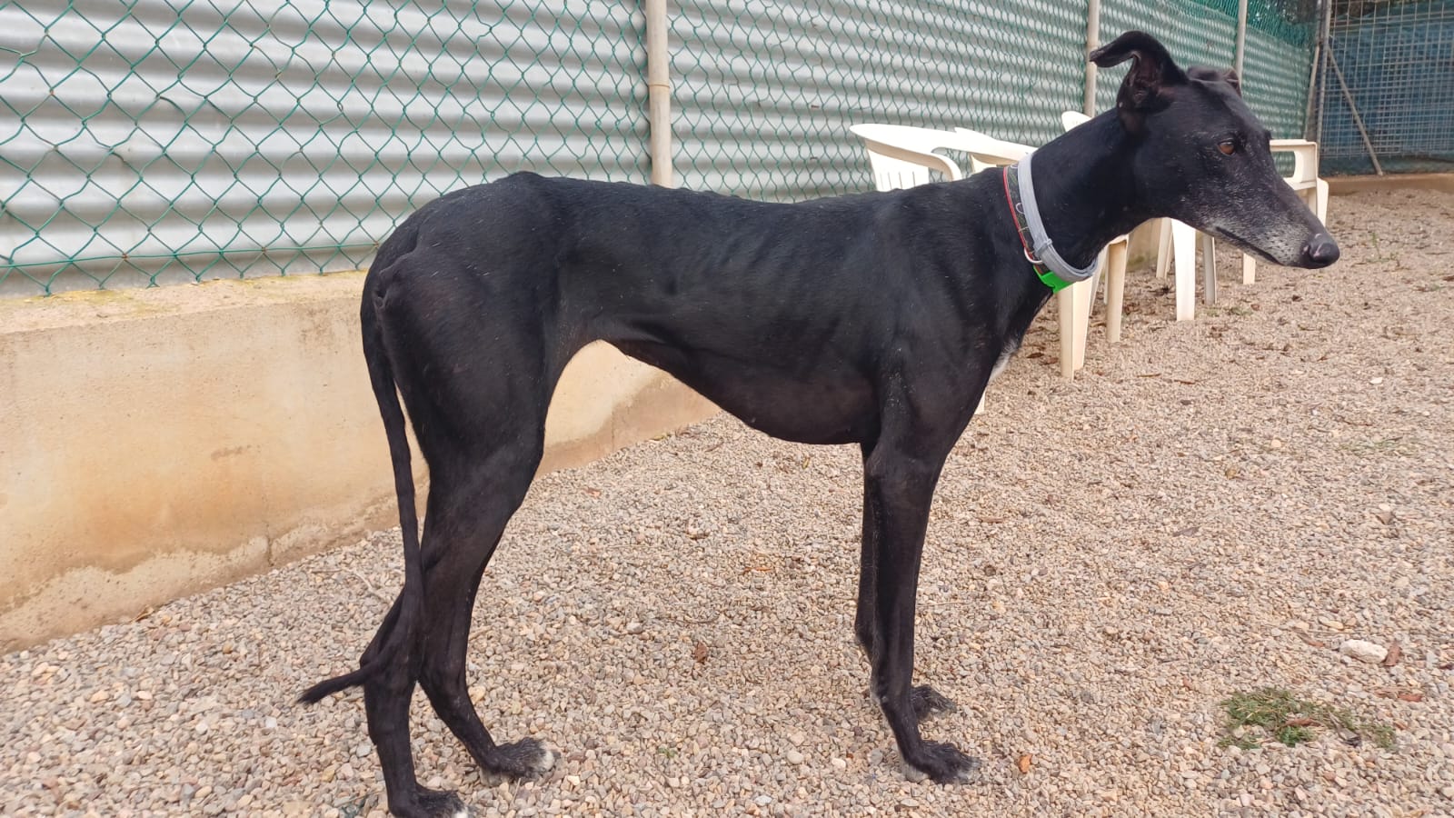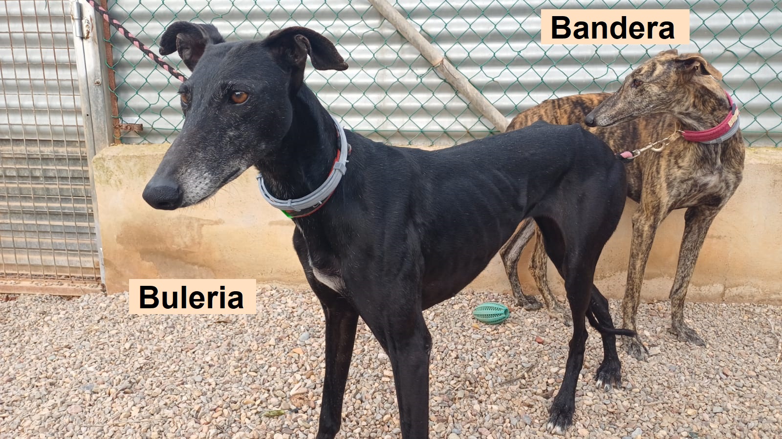 Buleria ist eine wunderschöne schwarze Galgohündin, die gemeinsam mit ihrer Schwester Bandera (braun-gestromt) von einem Jäger aussortiert wurde. Buleria und Bandera sind am 17.03.2026 in unser Refugio in Spanien eingezogen. Im Moment ist Buleria noch etwas nervös, doch mit Geduld, Ruhe und liebevoller Führung werden sie ganz sicher noch Vertrauen fassen. Mit Kindern kommt Buleria gut zurecht und zeigt sich freundlich. Wie sie auf Katzen reagiert, ist bisher nicht bekannt. Buleria ist kein Hund für Anfänger. Sie sucht ein einfühlsames, erfahrenes Zuhause, das ihr die Sicherheit gibt, die sie braucht.